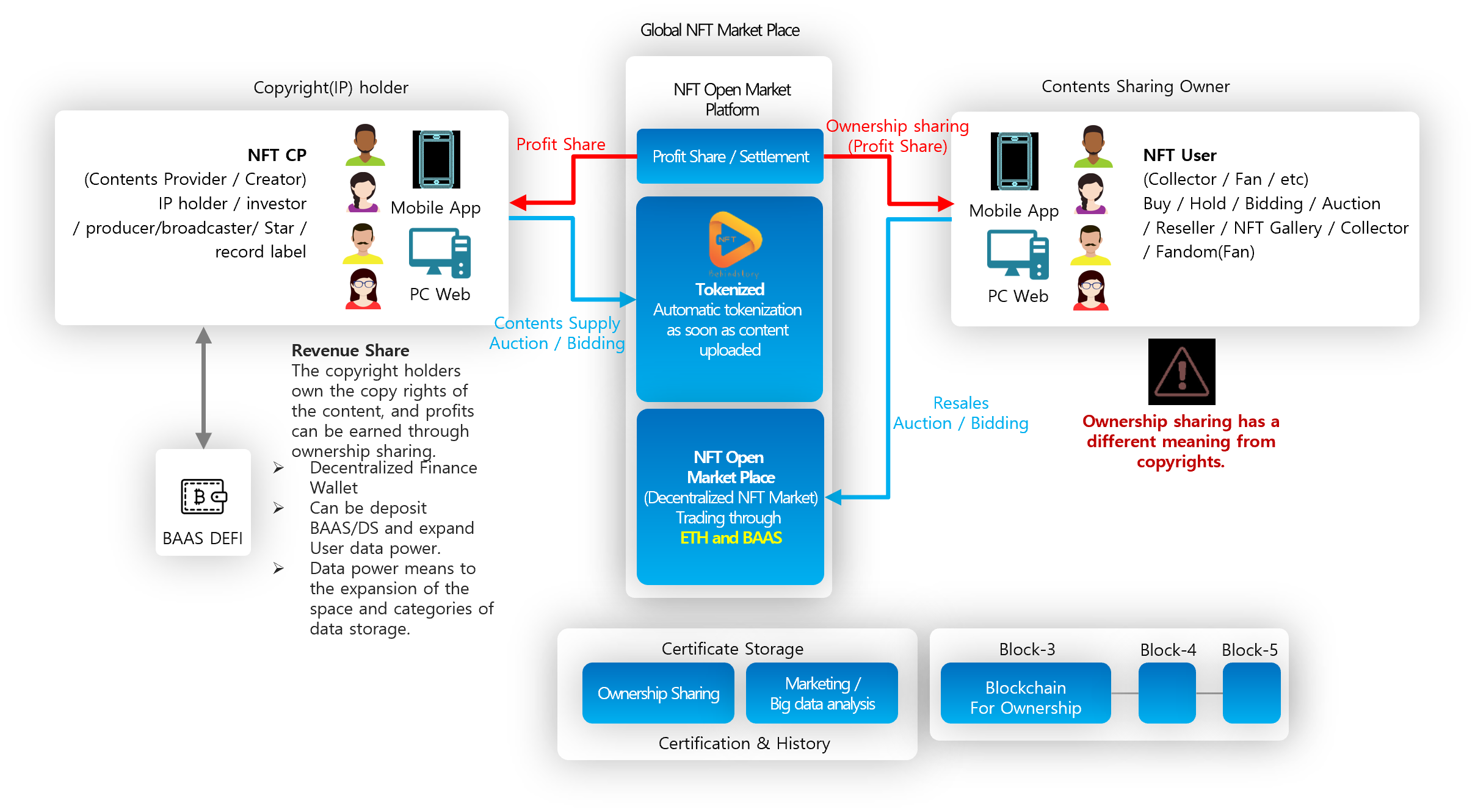 ### ![](https://4159522092-files.gitbook.io/~/files/v0/b/gitbook-x-prod.appspot.com/o/spaces%2FDYrkUeB2VQm1KK5ea6bi%2Fuploads%2FsfnKfeY6nphZ2mhjrKZ4%2Ficon11.png?alt=media\&token=d48c7e70-62b1-444f-a564-7b11901ed852) B2C / B2BC NFT Open Market Place of entertainment contents